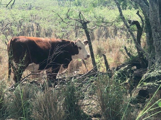 trees and inhabited by a small herd of cattle and goats as well as lots of chickens.