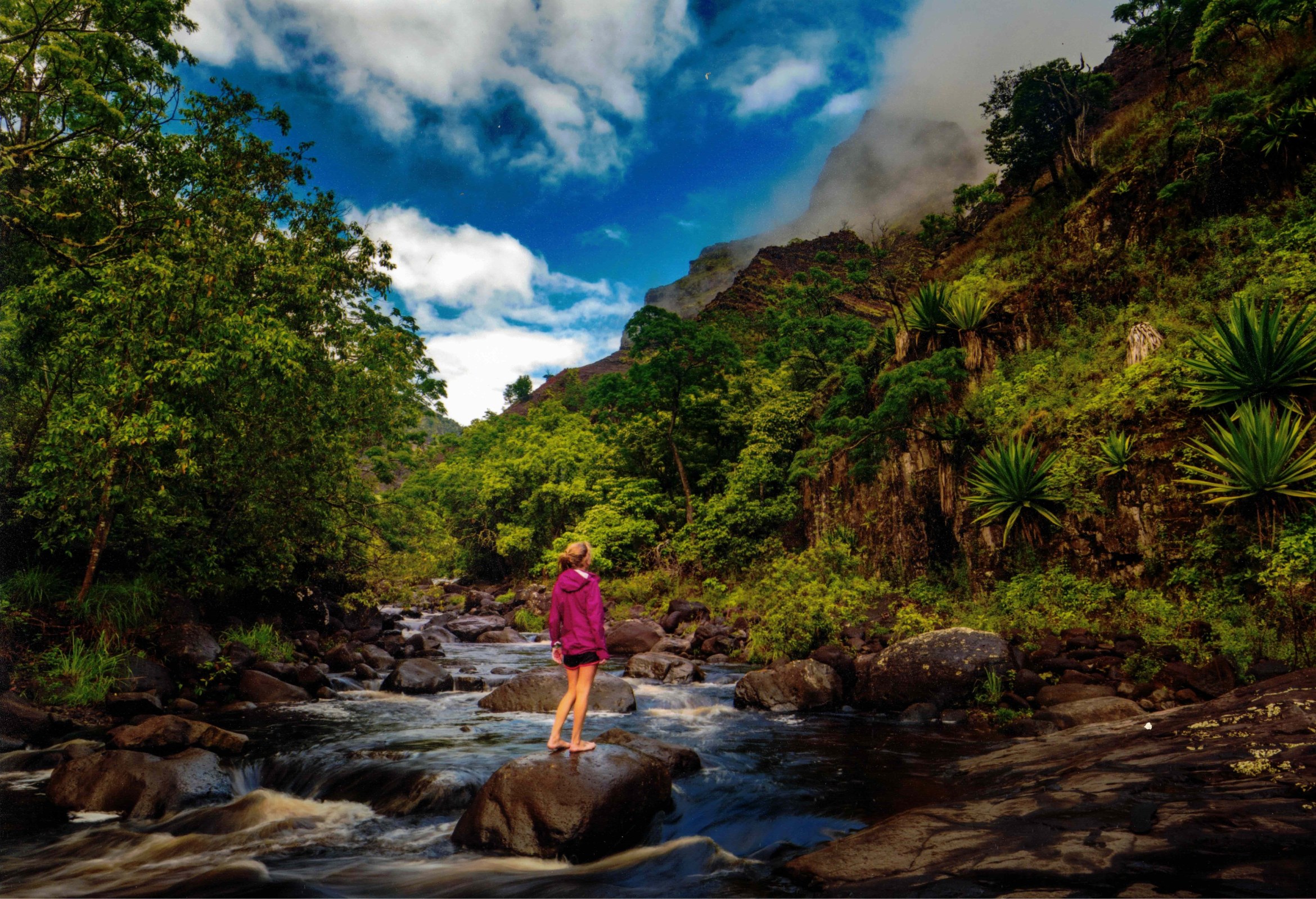 Centered 3000 miles from the nearest landmass, Kauai, the northernmost of the island chain, with a population of just over 70,000, is a popular vacation spot and a location used for numerous films.